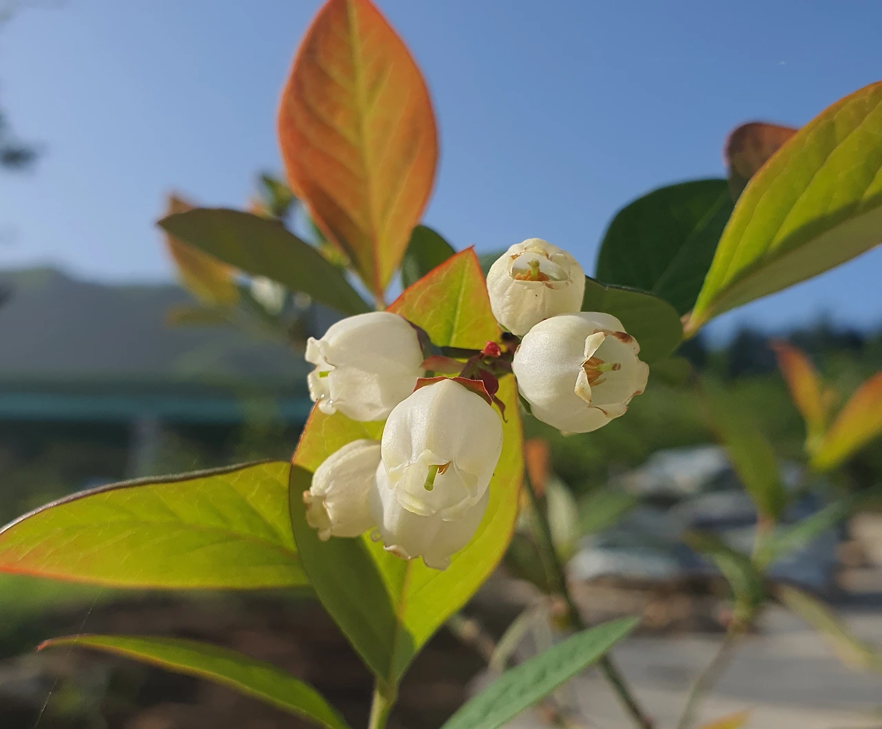 시장에서 꽃이 핀 블루베리 나무를 사왔어요. 올해는 꽃이 핀 딱 6개 만큼만 블루베리가 열겠네요.