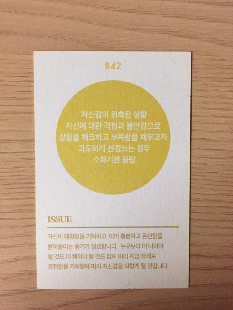 옐로우가 눈에 띄어 카드도 꺼내보니 역시 컬러는 나를 꿰뚫고 있었다. 흐미.
