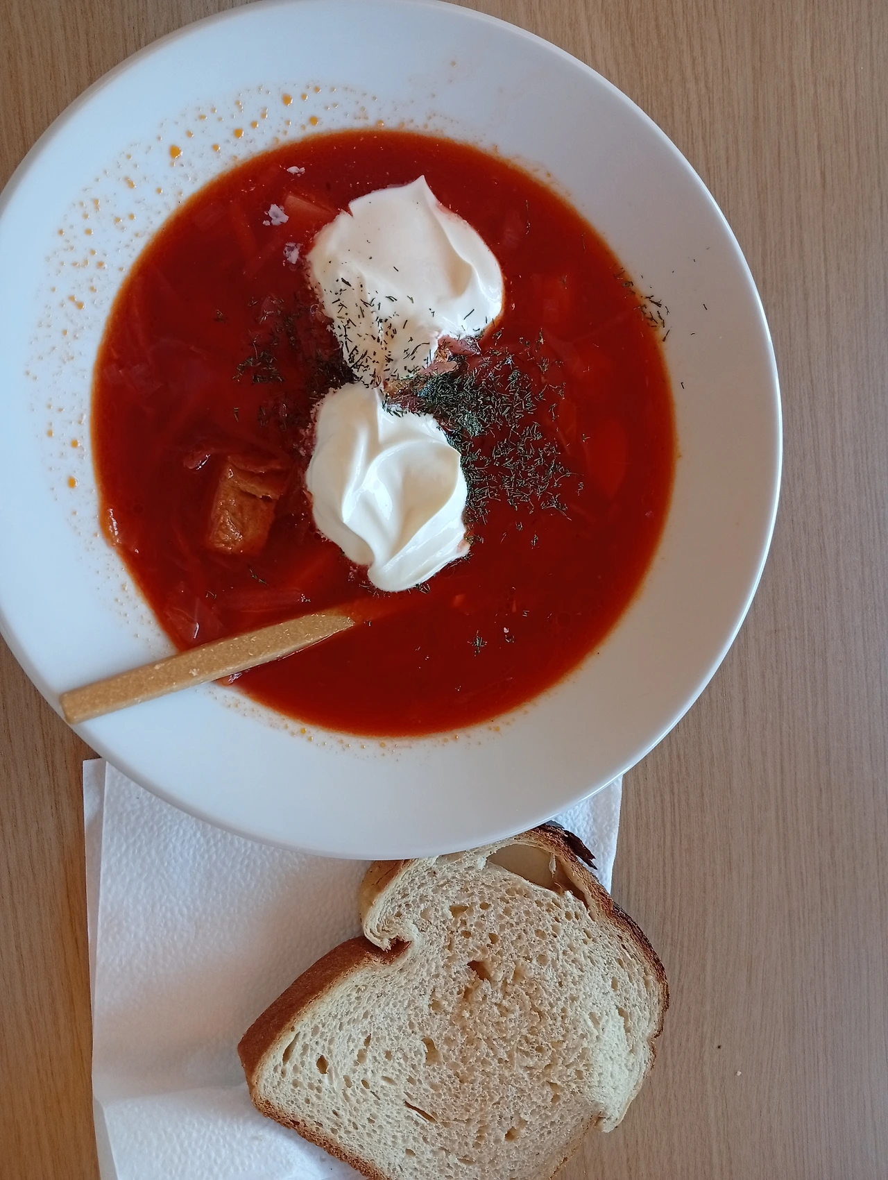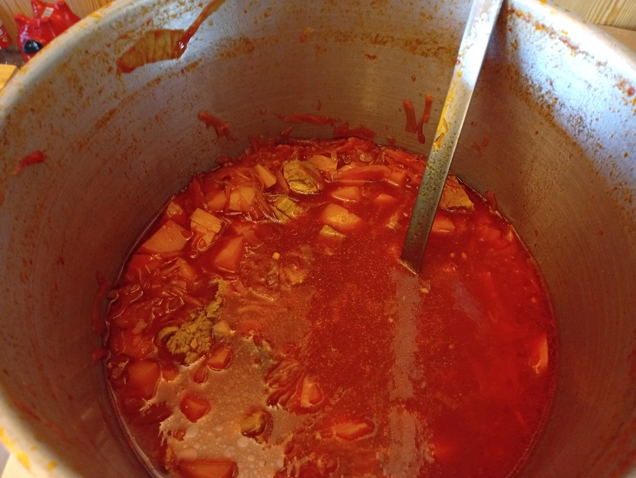 보르쉬 한 솥을 만든 우크라이나 분에게 설명을 듣고 배웠다. 멀리서 밥 먹고 있던 청년이 다가와서 "하루 지나서 다음날에 데워 먹어야 더 맛있다"라고 비법을 알려 줬다.