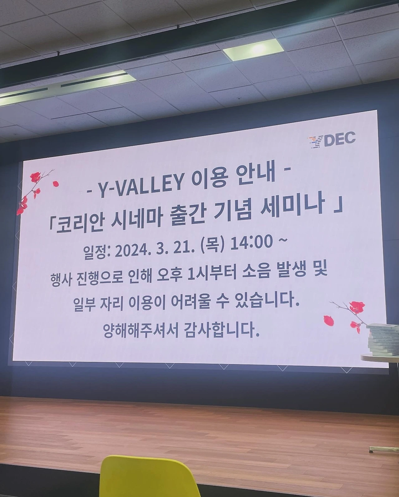 오늘 연세대학교 삼성. 학술 정보관 Y Valley에서 열렸던 세미나 <코리안 시네마: 남과 북, 경계를 넘어>는 세미나 주제와 동일한 제목의 책의 저자이신 이향진 교수님과 역자인 강승혜 교수님의 간담회 형식으로 진행되었다.