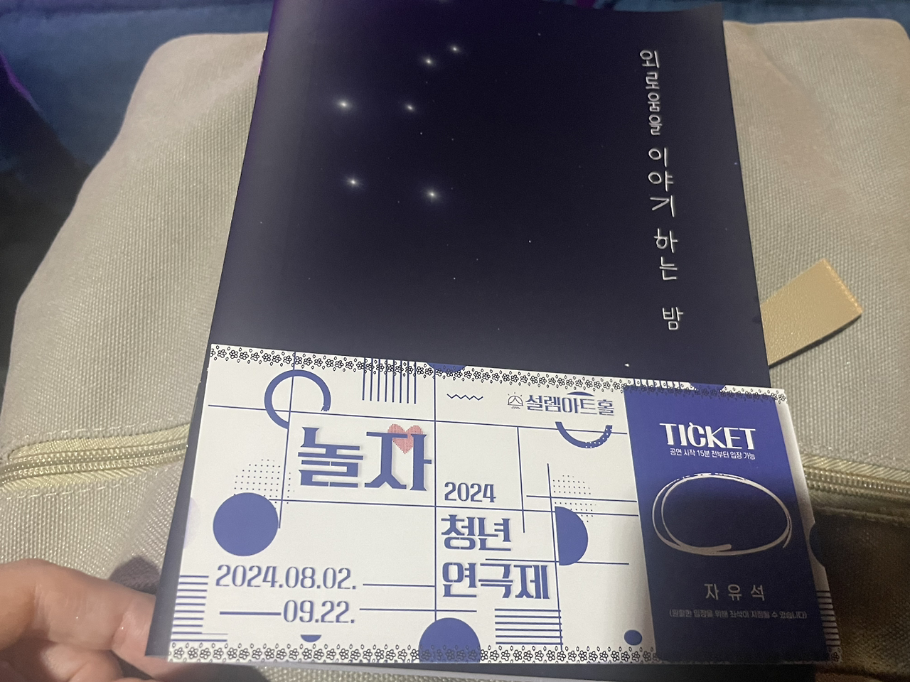 무대와 객석 간의 거리는 가까웠다. 배우와 관객 사이의 거리도 가까웠다. 그래서일까. 공연이 시작되기 전에 느낄 수 있던 특유의 긴장감 보다는 친한 이웃집에 맘편하게 즉흥적으로 놀러온 기분이 들었다. 게다가 추석 연휴 직전이라 그런지 관객의 수도 그다지 많지 않아서 오히려 오붓하게 연극 공연에 몰입할 수 있을거라는 기대감이 들었다.