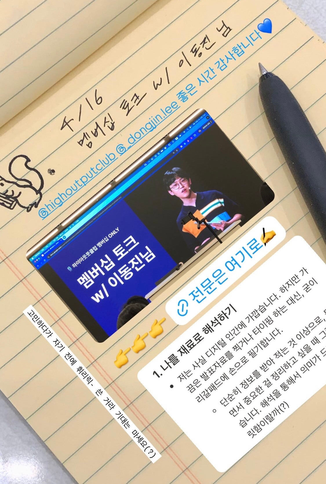 저는 사실 디지털 인간에 가깝습니다. 하지만 가끔은 발표자료를 찍거나 타이핑하는 대신, 굳이 리갈패드에 손으로 필기합니다.