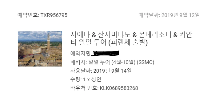 그래서, 열심히 찾다 'KLOOK(클룩)'이라는 플랫폼에서 피렌체 출발, 하루 만에 무려 '시에나&산지미냐노&몬테리조니&키안티' 네 곳을 방문하는 투어가 있어 얼른 예약했습니다. 14일 출발인데, 12일에 예약했어요! 2일 전에도 예약이 가능한 점도 좋았습니다. :) 한국어 투어가 아니라, 세계 각국의 사람들이 모여 진행하는 투어라 더 설레기도 했어요. 집합 장소인 버스 터미널로 향했는데, 생각보다 찾기가 힘들어서 헤맸던 기억이 나네요. 투어 집합 장소가 친절히 안내되어있지 않았던 점은 조금 아쉬웠어요!
