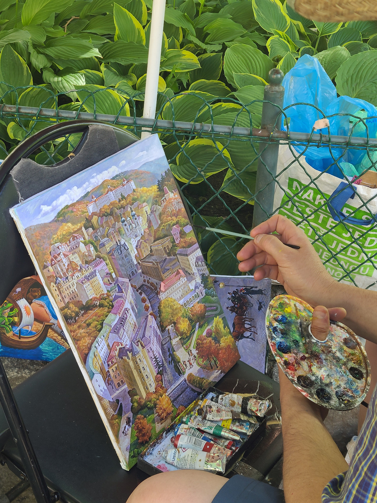 그리고 관광지에 가면 거리에서 그림 많이 팔죠? 그 도시에 대표 스팟을 그림에 담아 팔기도 하고, 캐리커쳐를 직접 그려주시기도 하고, 카를로비에도 그림을 파는 분이 있었는데요!