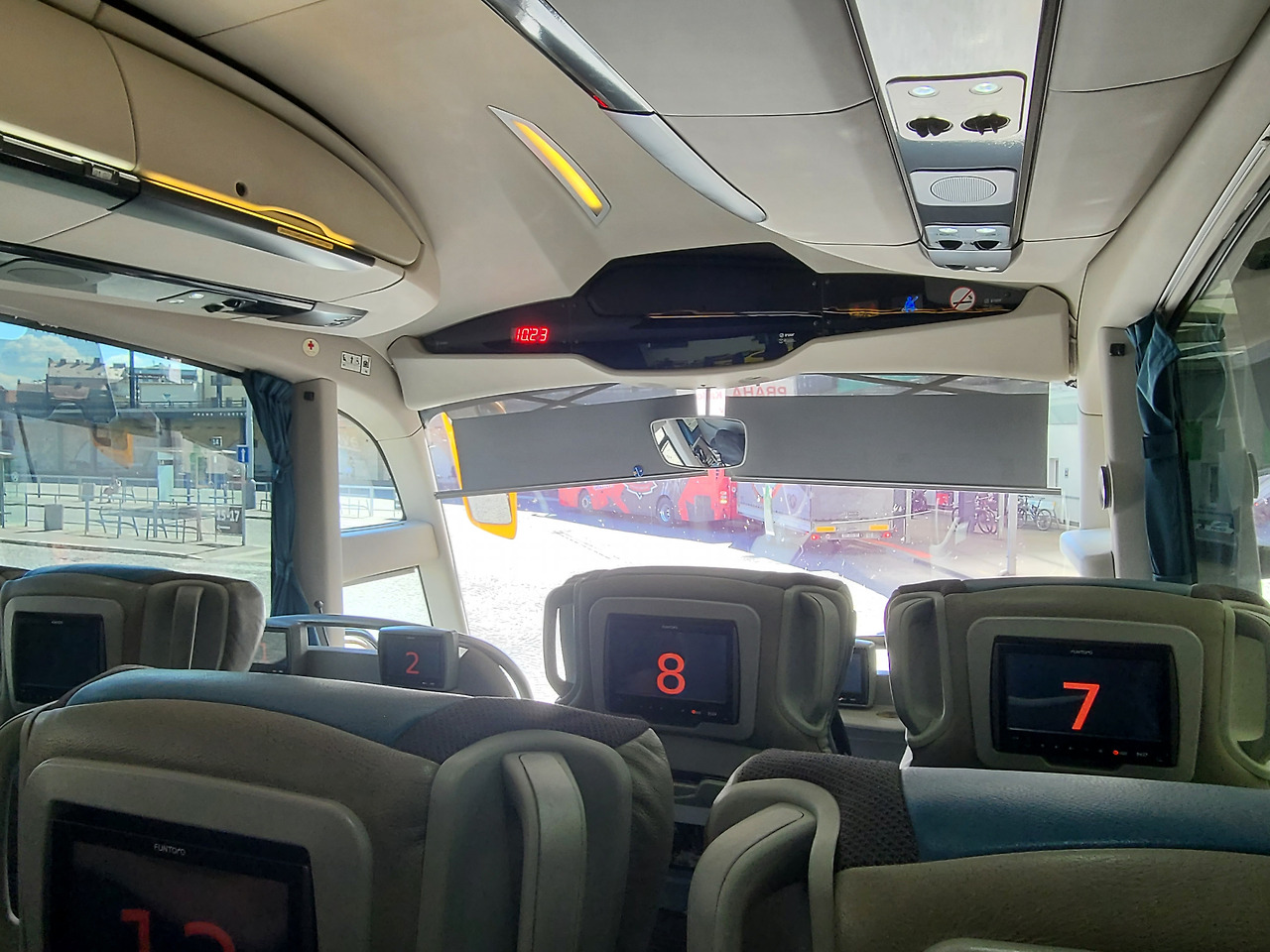 이렇게 버스에 자리가 표시되어있고, 버스 상태나 좌석은 괜찮았습니다. 물론 regiojet도 버스마다 조금씩은 달랐는데 다 무난했어요. ㅎㅎ 가격도 저렴하고 시간도 편도 3시간 이내면 버스 타기 괜찮은 거 같아요. 카를로비바리로 출발!