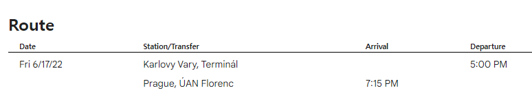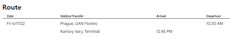 오전 10시 30분에 출발해서, 2시간 정도를 가면 카를로비 바리에 도착하는 일정입니다.