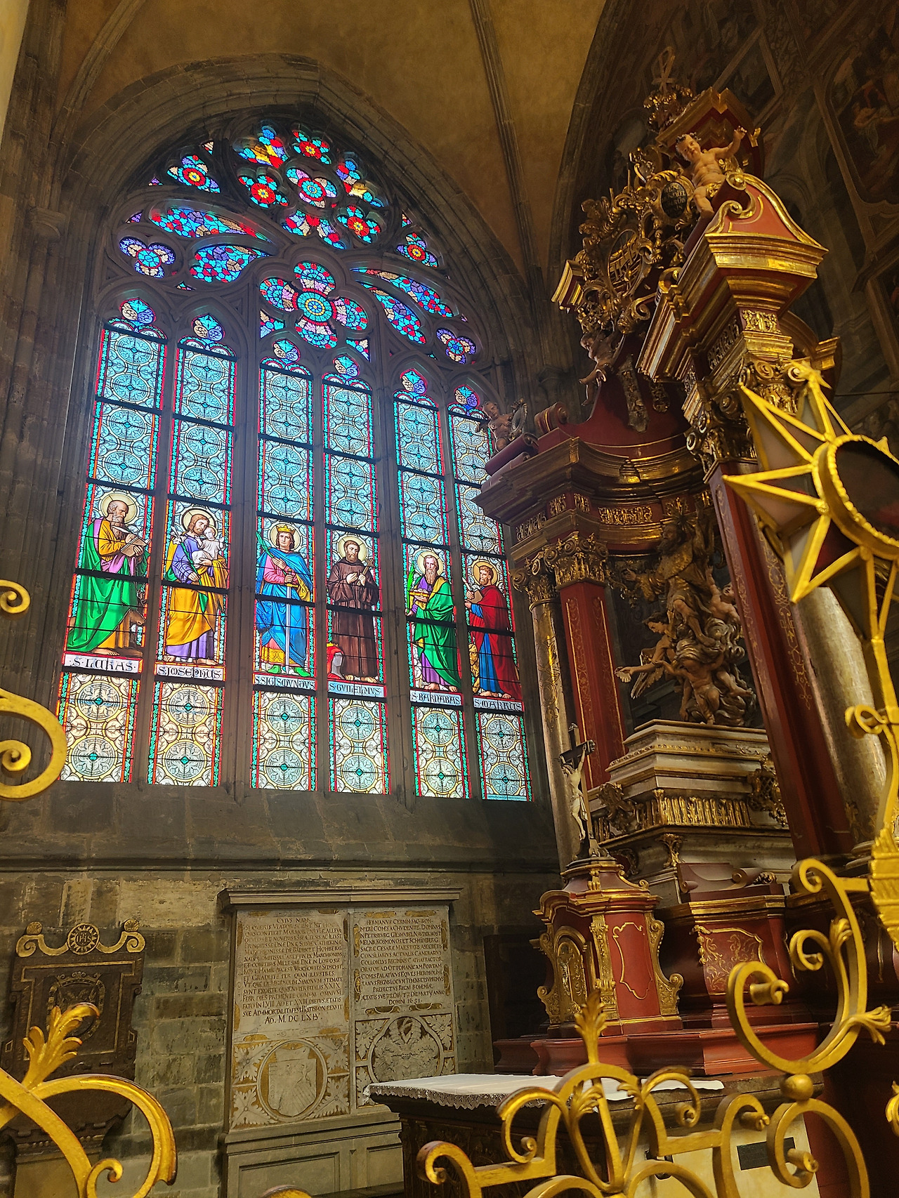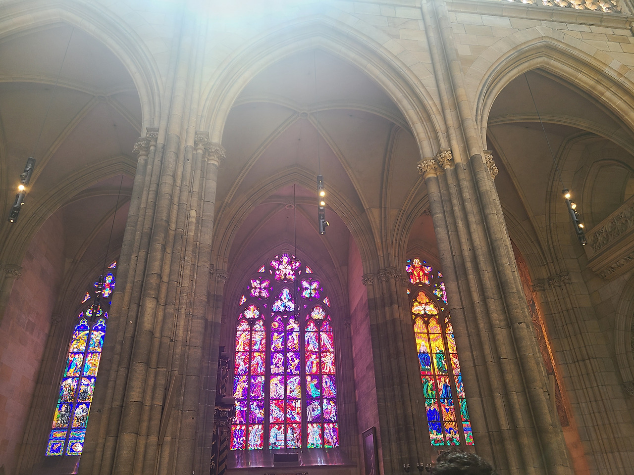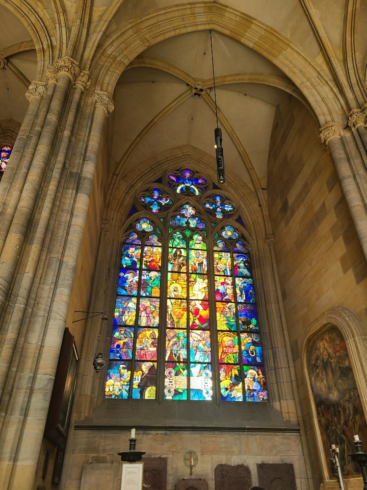 가장 먼저 성 비투스 대성당 안을 관람했습니다. 프라하 성은 주변 정원부터 다양한 건물까지 생각보다 볼거리가 정~말 많아서 하루는 잡고 와야겠더라고요. 스테인드 글라스도 예술이었습니다.