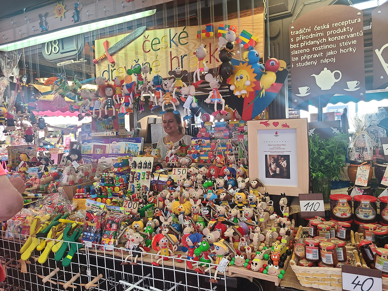 제가 갔을때는 아기자기하게 과일을 담아놓은 바구니, 마디마디 움직이는 마리오네트 인형, 구시청사 천문시계 미니어처, 프라하의 풍경을 그린 그림, 소장하고 싶은 맥주잔 등 기념품을 팔고 있었습니다. 대체로 비슷한 물건을 판매하고 있었고 가격은 저렴한 편은 아닌 것 같아요.