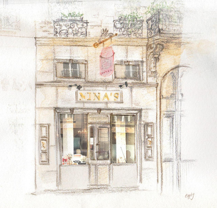 니나스의 대표 홍차인 '마리 앙투아네트'의 티 캐디 이미지를 표식처럼 걸어둔 모습을 따라 들어섰다.