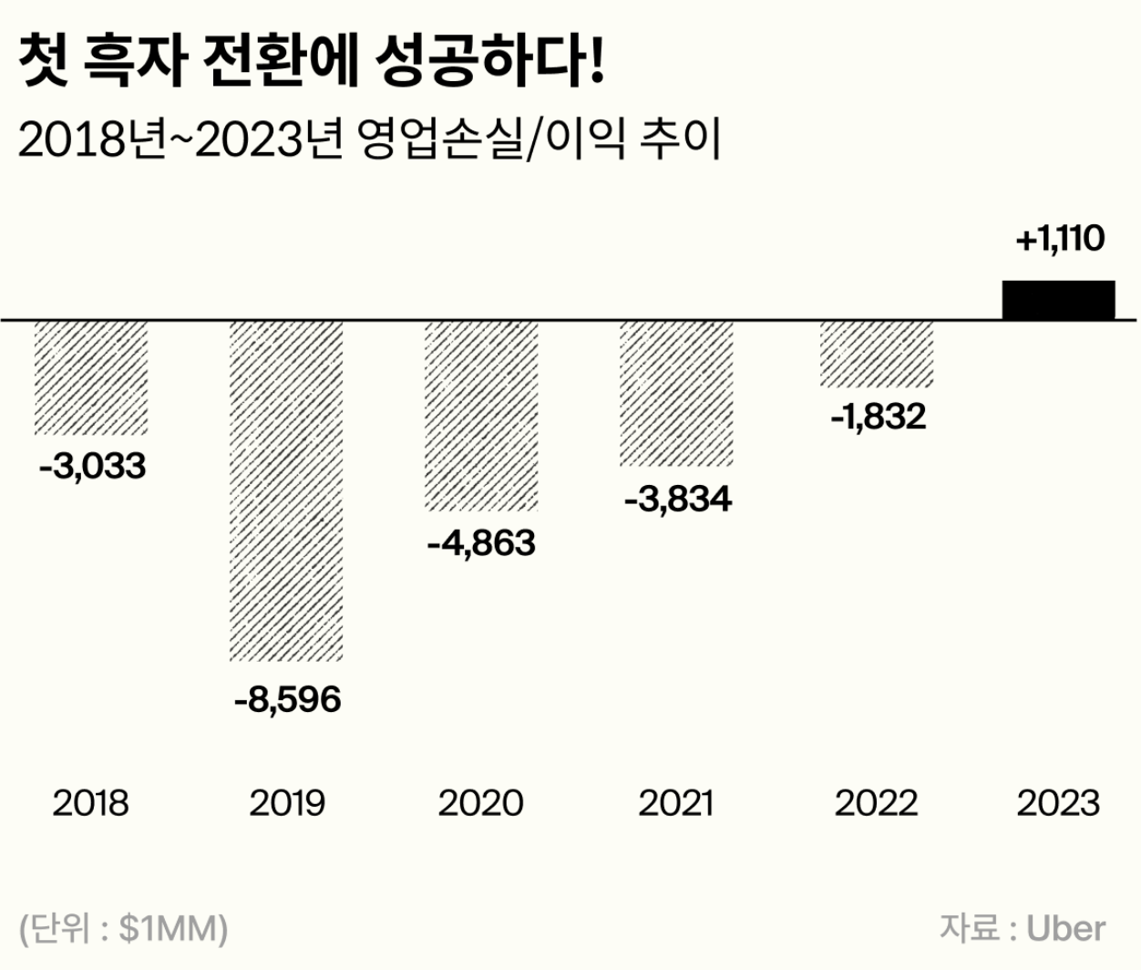 2023년 사상 처음으로 흑자 전환에 성공한 우버.