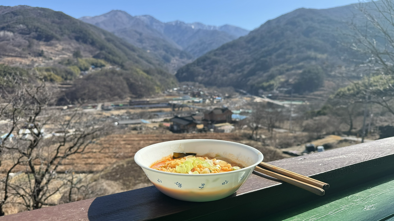 TO는 삶이라는 글자를 종종 붓글씨로 멋지게 써서 지인들에게 선물한다. 죽음으로부터 달아나 내가 갈 곳은 삶의 의지로 충만한 그의 집이었다. 아닌 게 아니라 그의 집 곳곳에는 그가 쓴 삶이라는 글자가 눈을 부릅뜨고 있다. 나마스테! 택시를 타고 도착한 그의 집 이름이 나에게 안부를 물었다. 남의 나라 말인데도 따스함이 건너왔다. 집은 비어 있었고 지금 진주에 있다는 TO가 오려면 아직 멀었다. 뭔가를 특별히 하려고 온 건 아니었다. 허기를 느낀 나는 살기 위해 그의 찬장을 뒤져 안성탕면 하나를 끓여 먹었다. 지리산을 눈앞에 두고서 딱히 무슨 말을 주고받지는 않았다.