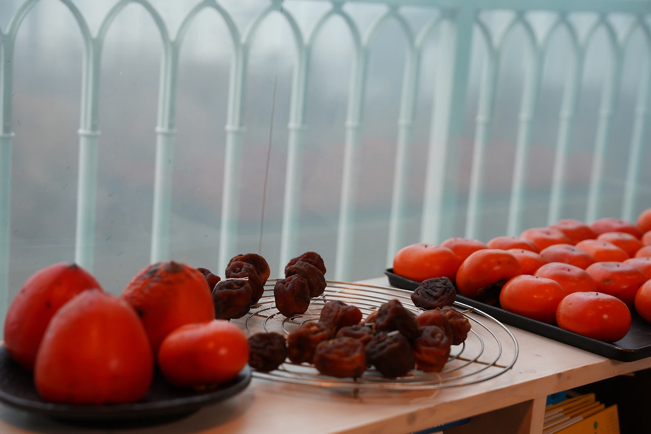 기다리고 기다리던 개봉일이 되어 박스에 단단하게 붙어 있는 테이프를 떼어 내고 상자를 열면 품새가 반듯한 주황색의 감들이 단정하게 윤기를 뽐내며 좌우앞뒤 줄을 맞추어 자리를 잡고 있다. 하지만 이때가 되었다고 해서 바로 먹을 수 있는 것은 아니고 두어날 정도 실온에 두어야 한다. 하루하루 감의 외모가 바뀌는 걸 지켜보는 재미가 있는데 불투명했던 표면이 투명해지고 손으로 눌렀을 때 약간의 저항감을 느낄 정도로 말랑할 때가 바로 그 순간이다.