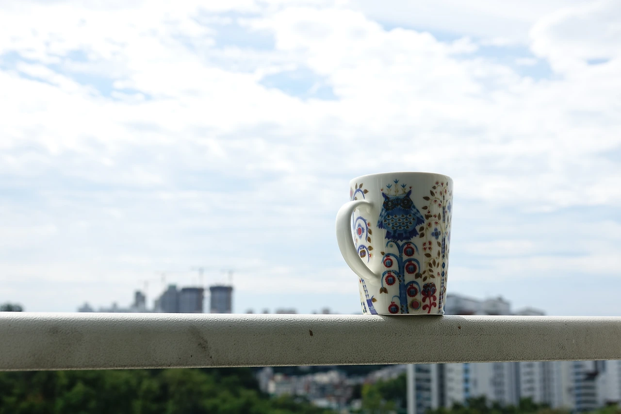 아무 컵에나 따르면 안 된다. 혼자 있을수록 더 멋있게. 제일 아끼는 컵에 커피를 따라 베란다로 들고 간다. 우리집 베란다에는 내가 만든 작은 나무 마루가 하나 있다. 앉아도 좋고 누워도 좋을 크기다. 그 마루에 앉아 밖을 내다보며 커피를 마신다. 혀 끝에서 음미하고 코 끝에서 음향한다. 목 뒤를 타고 거꾸로 향이 전해진다는 말은 사실이다.