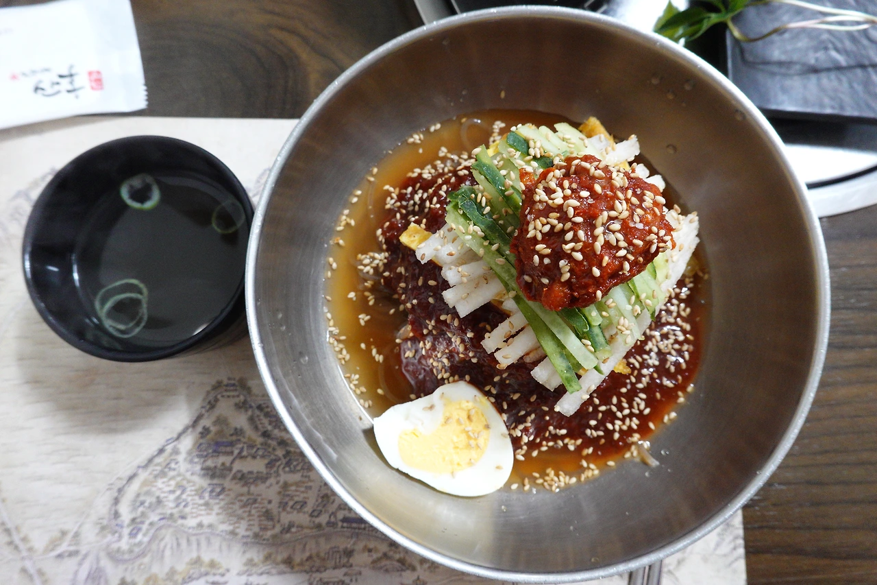 지금이야 그 뜨거움이 조금 사그라들었지만 한때 냉면에 대한 면스플레인들의 사랑과 애착은 대단했다. 어떤 특정한 음식에 대한 논쟁과 이해의 깊이와 넓이가 확장되는 것은 우리 음식의 이야기를 풍성하게 한다는 점에서도 바람직하다. 서울의 주요 노포들을 중심으로 냉면맛집들은 발견되고 확대재생산 되었다. 서울에만 유명 냉면집이 있을쏘냐 할 만한 지역이 바로 진주. 서울의 평양냉면과는(서울의 서울냉면이 아니라 평양냉면이라니) 장르가 다른 진주냉면의 품격을 한 단계 올려주었다는 평가를 현지인들로부터 받는 산홍냉면이 마침 공교사 후문에서 걸어갈 수 있는 거리에 있었다. 지나칠 수 없었다. 마침 점심 때이기도 했고.