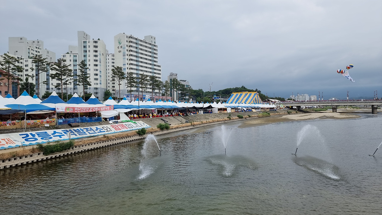 형을 만나기로 한 시간이 조금 남아서 축제장을 둘러 봤다. 이불장이 크게 열렸는데 알고 보니 단오제는 이불장이 유명하다고 한다. 이불 사실 분들 참고하면 좋겠는데 1년을 기다려야 한다는 점도 더불어 참고해 주시기 바란다. 지방의 축제장이라면 있을 모든 것이 있었다. 이것저것요것그것, 안 파는 거 빼고 다 파는 식당과 야바위 겨우 면한 총쏘기, 공 던져서 맞히기, 다트 던지기, 화살 쏘기 등등의 게임을 할 수 있는 좌판이 성업중이었다. 미니 놀이공원은 당연히 와 있었고 사라진 줄만 알았던 동춘써어커스단이 절찬리 공연중이었다. 그 세월을 버티고 살아남아 줘서 고맙다. 지방의 특산품과 공예품이 빠질 수 없고 세계 음식을 파는 푸드트럭도 한 자리를 차지했다. 싼 맛에 돈 쓰고 가라고 생활용품, 옷, 악세사리, 주방용품을 파는 가게 주인장들도 넘치는 손님에 달뜬 표정이었다. 딱히 먹을 거 없고 살 만한 것도 없었지만 사람이 사람을 얼굴과 얼굴로 직접 만나는 장이 열린 것 만으로도 좋았다. 어깨를 부딪히지 않으면 앞으로 나아갈 수 없지만 누구하나 찡그리는 사람이 없었다.(한 두명은 있었겠으나) 연어가 돌아오는 것으로 유명한 남대천에 사람들이 돌아왔다.