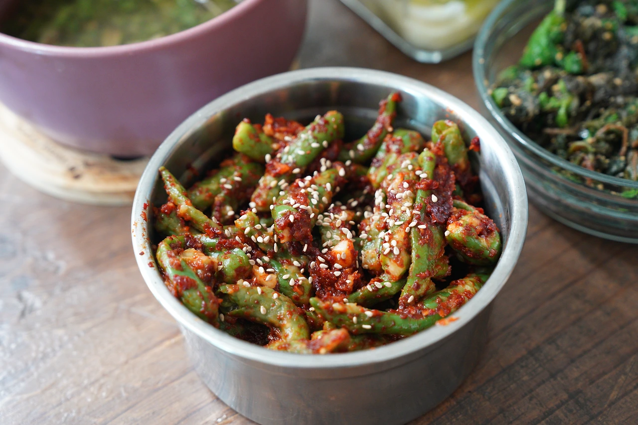 호박볶음, 깻잎나물, 고추찜, 고추장물