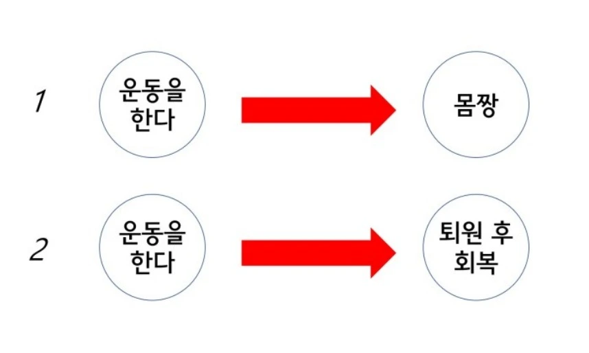 2의 경우를 가정한다면 병원에 1년간 입원해있다가 퇴원해서 몸을 좀 회복하려고 하는 사람이 1과 같이 운동을 하게 되면 오히려 건강이 완전 망가져버릴겁니다.