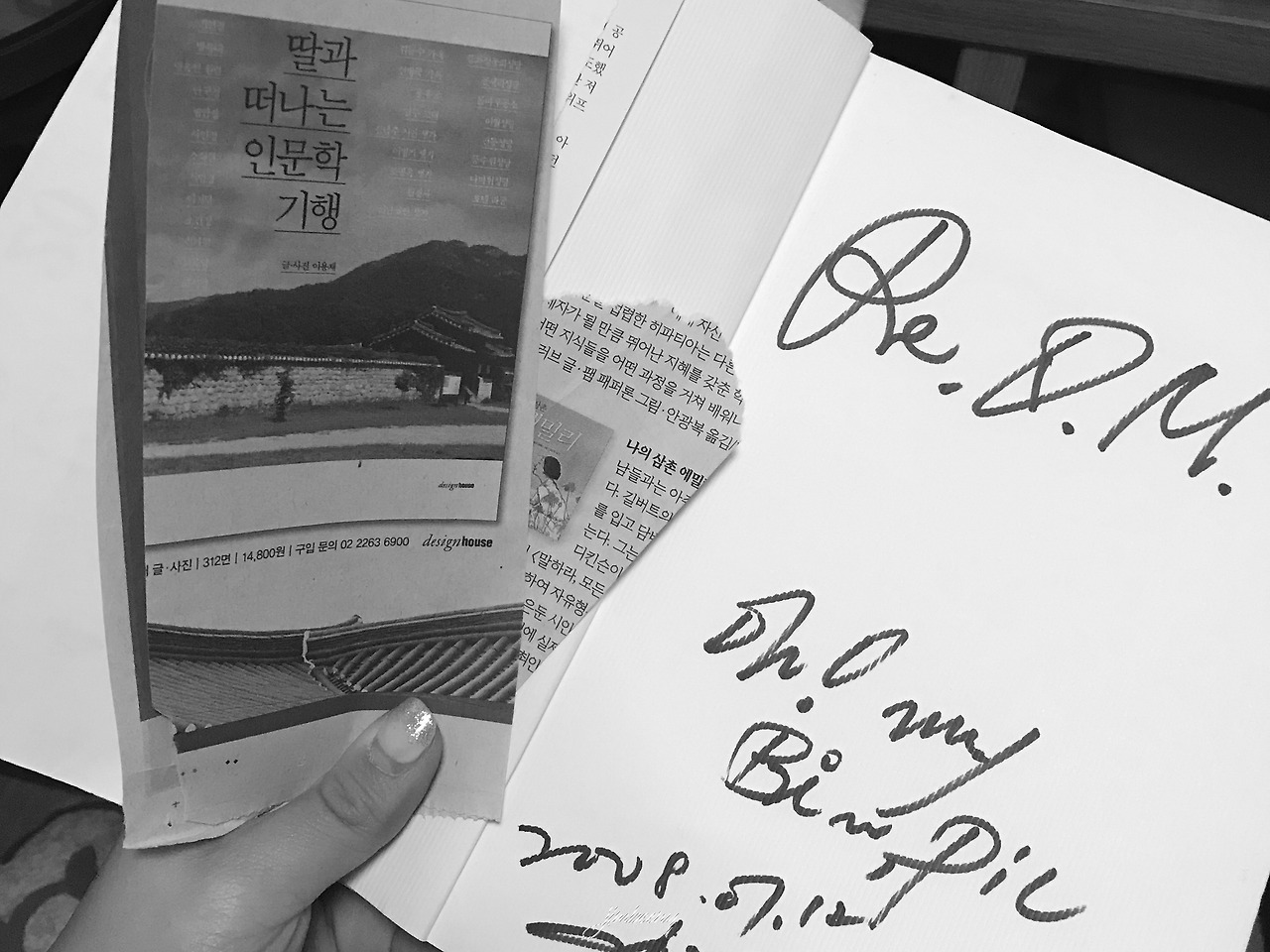 우리 가족을 향한 아빠의 표식 옆에는 그즈음 신문 광고를 오린듯한 몇 개의 종이 쪼가리가 끼워져 있었다. 책 광고였다. 아빠는 매달 책을 선물하기 전까지 신문이 추천하는 책들의 정보를 모아 왔던 걸까. 아빠가 선물하지 못했던 책의 제목들을 보다가, 나는 아빠의 표식이 남겨진 책들을 다시 데려가야 할 쪽으로 옮겼다. 그리고는 남편에게 메시지를 보냈다.