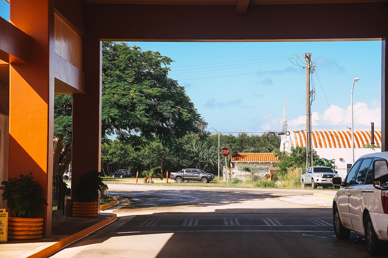 공항 뒤편은 비행장이 있는 쪽보다 더 티니안다웠다. 높은 건물이나 밀집된 인가 같은 평범한 공항 풍경과 비교하면 심심하다고 표현할 만한 수준이다. 한없이 높은 파란 하늘 아래, 초록 나무가 우거진 풍경 사이에 덩그러니 놓인 기분. 밤에도 불이 꺼질 줄 모르는 서울을 떠나 아무렇게나 하루를 보내도 좋은, 무인도에 도착한 느낌이었다.