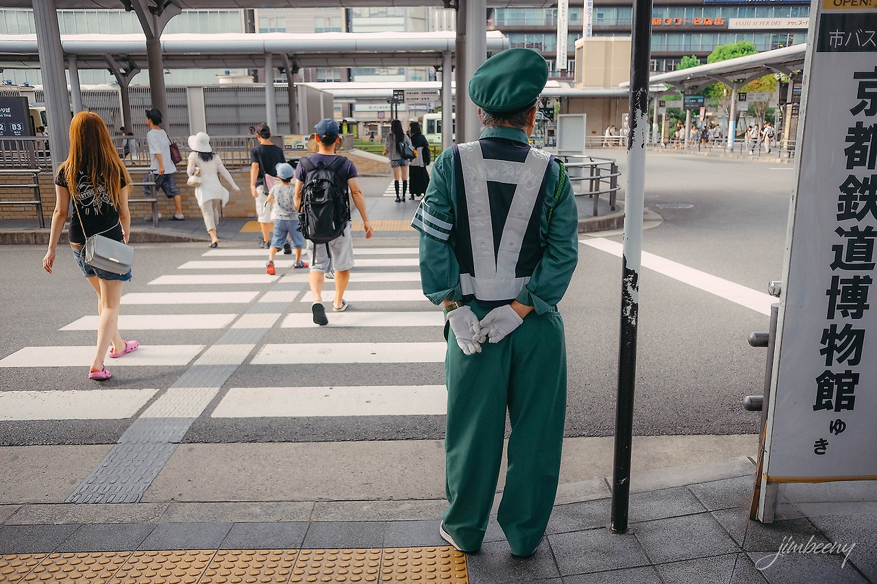 숙소까지 걸을까 하다가 손이며 어깨에 지어진 짐이 많다는 사실을 깨닫고 버스 정류장으로 향했다. 교토역 버스 정류장 B1 구역에서 9번 버스를 타고 ‘니시혼간지 마에’ 정류장에 내렸다. 아무도 내리지 않는다고 걱정할 필요는 없다. 버스에서 내리면 이따금 자전거를 탄 현지인들이 지나갈 테니.