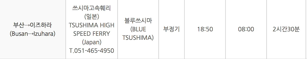 *대마도 배편에 관한 정보는 가장 하단에 있습니다.
