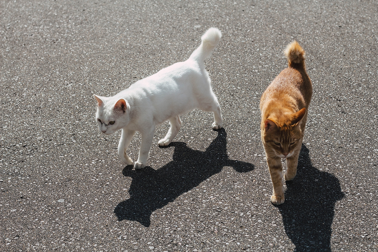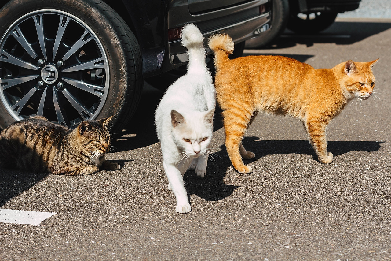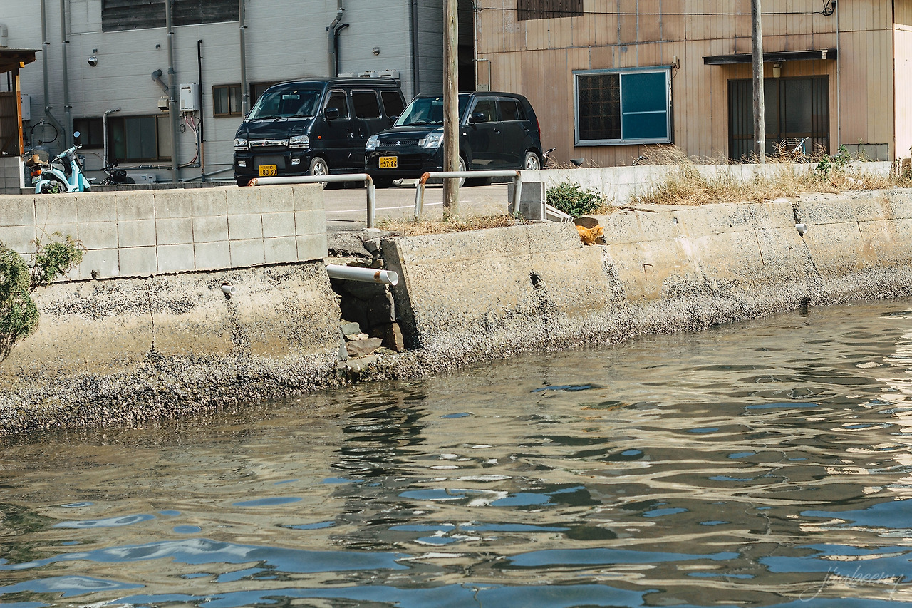 고양이는 자신의 생활권을 절대 벗어나지 않는다고 한다. 실제로 우리동네에는 몇 년째 한 곳 주위를 머물며 사는 고양이가 꽤 있다. 히타카츠 항 근처 동네도 누군가 길고양이를 위해 밥을 주는 듯 했다. 한 곳에 무리지어 모여 있는 점도 그렇고, 특히 우리가 다가가자마자 경계 없이 바로 들이대는 모습에서 분명 사람과 교류가 잦구나, 하는 생각이 들었다. 고양이를 만난 곳은 히타카츠 항에서 항구를 따라 터미널 방면으로 걸으면 나오는 큰 공터였다. 차가 다니는 큰 도로로 걸으며 이곳을 찾기는 쉽지 않으니, 히타카츠 항에 짐을 맡기고 바다를 따라 걷는 방법을 추천한다.