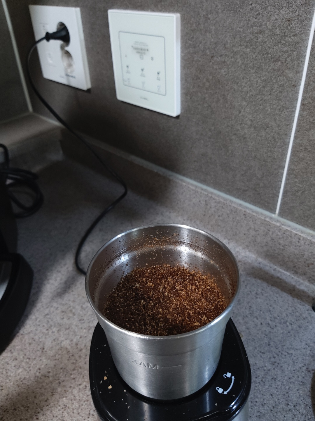 나는 손이 작다. 손가락을 쫙 펴고 엄지손가락 끝에서 새끼손가락 끝까지의 길이가 19cm다. 피아노 건반 화음을 누르지 못할 만큼 손이 작다. 30년 전 피아노 조율을 배울 때 단음 조율을 겨우 끝내고 화음 조율을 하다 포기할 정도로 손이 작다. 이후로는 살면서 크게 어려운 점이 없었는데 둥근 그라인더로 커피콩 가는 게 쉽지 않다. 커피콩을 갈 때면 식탁 의자에 앉아서 발을 의자 위로 올리고 두 발 사이에 그라인더를 끼고 커피콩을 갈았다. 두 발로 꽉 잡아도 커피콩을 가는 건 힘이 든다. 지루하고 힘이 들어서 다른 재미를 찾느라 커피콩 두 스푼을 넣고 몇 번을 돌리면 다 갈리는 지 세어 보기도 했다. 보통 이백 오십 번 넘게 돌려야 한다. 처음에 구입한 그라인더는 사각형 몸체라서 붙잡고 갈기는 쉬웠는데 뚜껑이 없어서 커피가 밖으로 튀어 나갔다. 2년 쯤 사용하다가 나사가 헐거워져서 뚜껑 있는 그라인더를 찾다가 둥근 그라인더를 구입했었다. 생긴 건 야무지게 생겼는데 한 손으로 잡고 분쇄하기가 쉽지 않았다. 결국 지난 2월에 자동 그라인더를 구입했다.