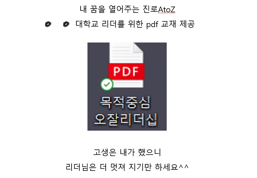 수업 방법을 바꾸었다. 학기말 진로 수업의 최종목표를 첫 주차 목표로 정했다. 목표점을 보여주면 그 곳까지 가는 과정이 덜 지루하고 더 재밌고 의미있을 거라는 생각이다. 첫 날 녹화를 위해 교재정리를 마무리하느라 며칠을 컴퓨터 작업했더니 눈앞이 흐리다. 워크북 형태의 교재라서 기록하기 편한 홀수 페이지에 비중있는 워크지를 맞추느라 수십 번을 확인한 것 같다.