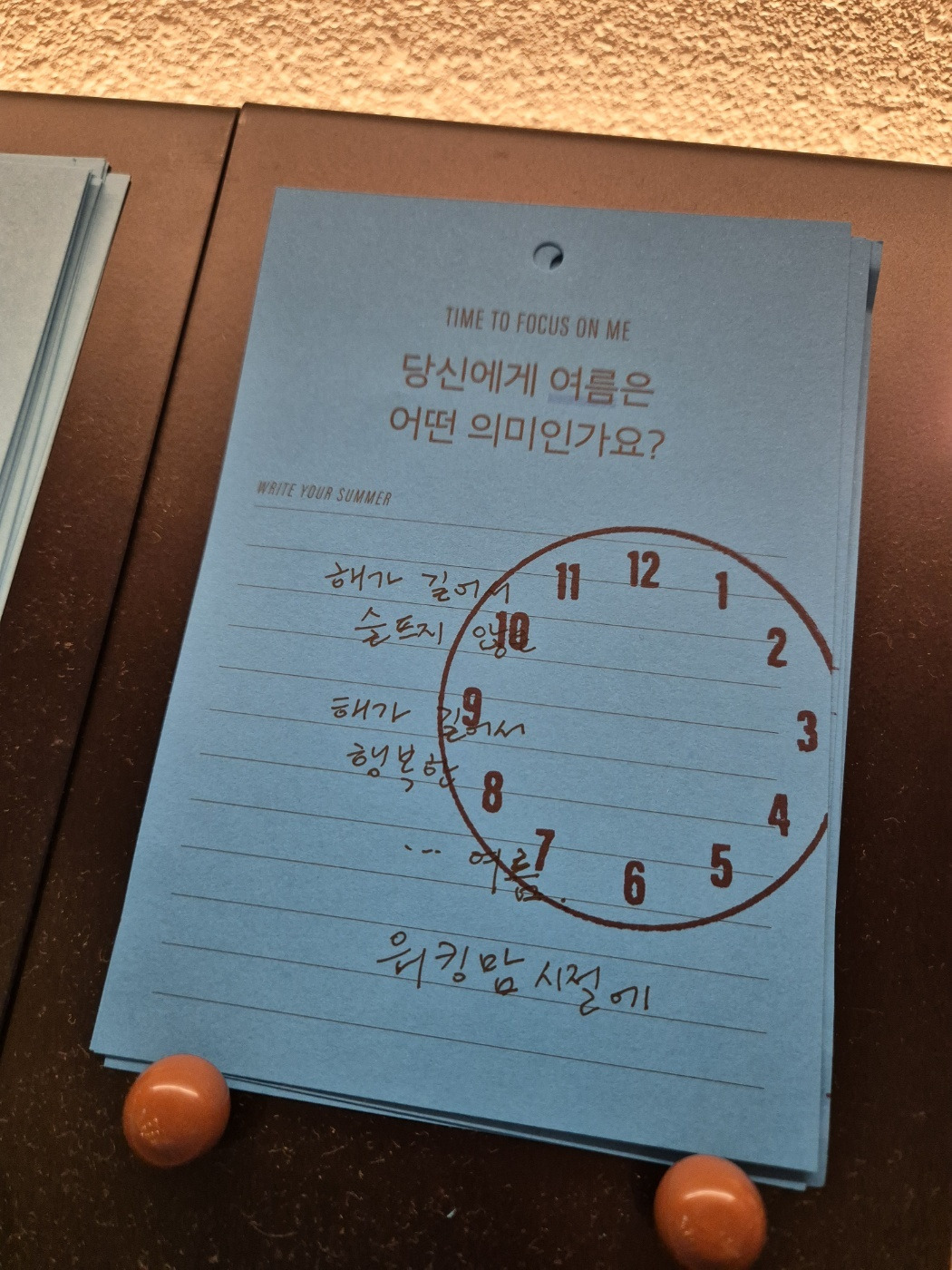 어느 카페에 갔다. 메모할 수 있는 질문지가 비치되어 있다. 파란색이 눈에 띠어서 한 장 집어 들고 펜을 꺼냈다.