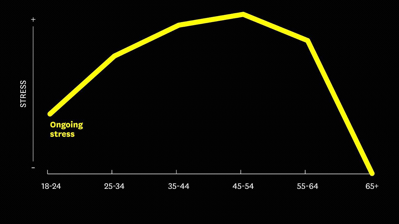 하버드 비즈니스 리뷰에 실린 '왜 당신의 이십 대 후반이 당신 인생의 가장 최악의 시기인가. (Why Your Late Twenties Is the Worst Tme of Your Life'라는 에세이에서는 88,000명을 상대로 조사한 결과 이십 대 후반과 삼십 대 초반에 스트레스 레벨이 가파르게 상승함을 발견했다고 한다. 이후로 스트레스 레벨의 상승폭은 줄어드나 이는 여전히 점진적으로 사십 대까지 상승하다가 은퇴시기쯤 가파르게 하락한다.
