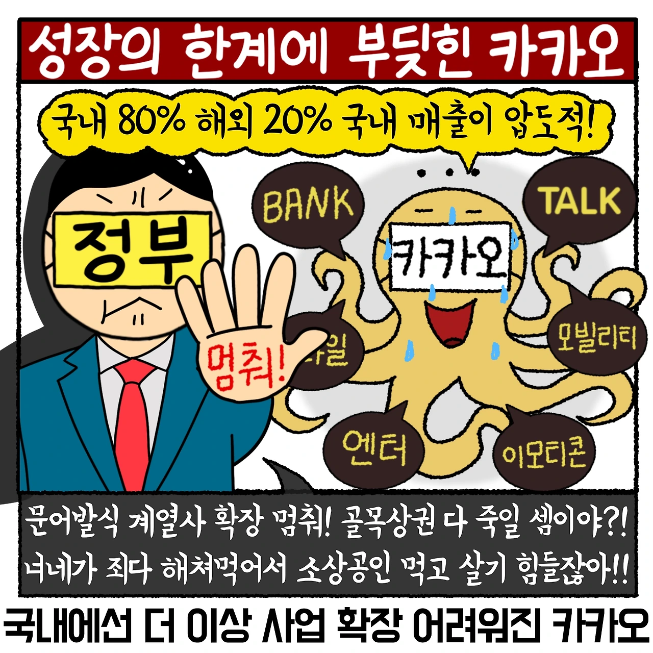 카카오는 국내 시장을 기반으로 성장한 회사입니다. 국내 아날로그 산업 부분을 전부 디지털화시키겠다는 목적하에 엄청난 문어발식 사업 확장을 벌였는데요! 그런 그들의 행보로 인해 골목 상권의 피해가 급증하였고, 소상공인들의 엄청난 반발에 부딪히게 됩니다. 그리하여 카카오는 더 이상 국내에서 사업을 확장을 할 수 없게 되었고, 더욱이 진출했던 사업 분야에서마저도 철수하기에 이르렀죠. 카카오는 더 이상 국내에서는 사업 확장이 어렵다는 판단하에 해외 사업 진출을 계획합니다. 그중 가장 잘 나가는 k-POP 산업에 진출하기 위해, 카카오는 SM을 인수하고자 이수만 회장과 접촉하게 됩니다.