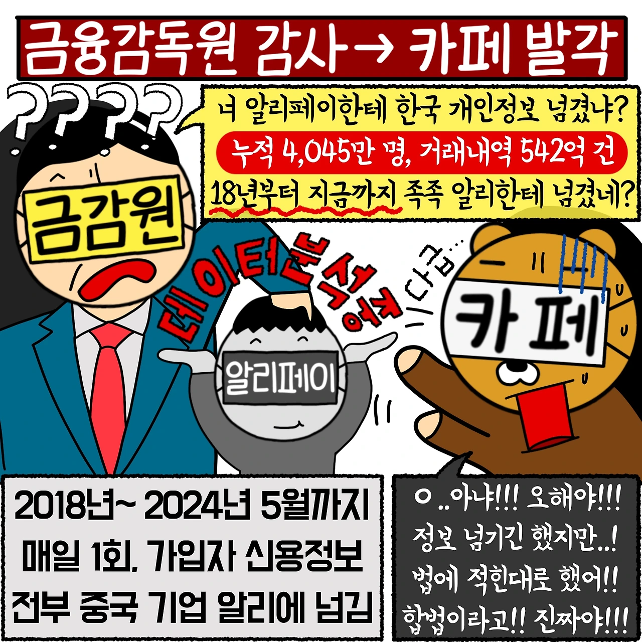 안녕하세요! 오늘은 “카카오페이”가 중국 “알리페이“에게 2018년부터 2024년 5월까지, 약 6년 간 고객 신용정보 542억 건을 넘겼다는 충격적인 뉴스를 공부해 봤습니다. 뉴스를 찾아보고 개인적으로 참, 어이가 없다고 생각한 사건인데요! 어떤 일이 있었는지 함께 알아보시죠!