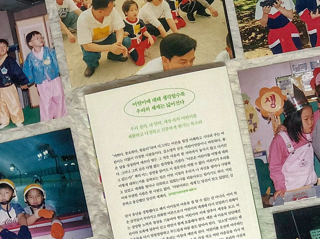 나의 어린 시절을 떠올려보면, 분명 어두운 그늘도 존재했지만, 그럼에도 그 시절에만 경험할 수 있는 참 싱그럽고 빛나는 나날을 보냈다. 그때 그 찬란한 빛은 결코 사그라들지 않고, 자라며 가슴속 단단한 결정체가 되어 내 안에서 영원히 빛을 발산한다. 사랑으로 나의 빛을 지켜준 부모님과 선생님의 노력이 있었기에, 나는 어린 시절의 반짝임을 기억하며, 그 빛이 내뿜는 길을 따라 더 넓은 세상으로 걸어간다. 나뿐만 아니라 이 세상을 살아가는 많은 이들의 가슴속에는, 어두운 그늘과 찬란한 빛을 동시에 뿜어내는 어린이가 단단히 버티고 서있다. 그리고 이제는, 어른이 된 우리가 자라나는 아이들의 찬란한 빛을 지켜줄 차례가 왔다.