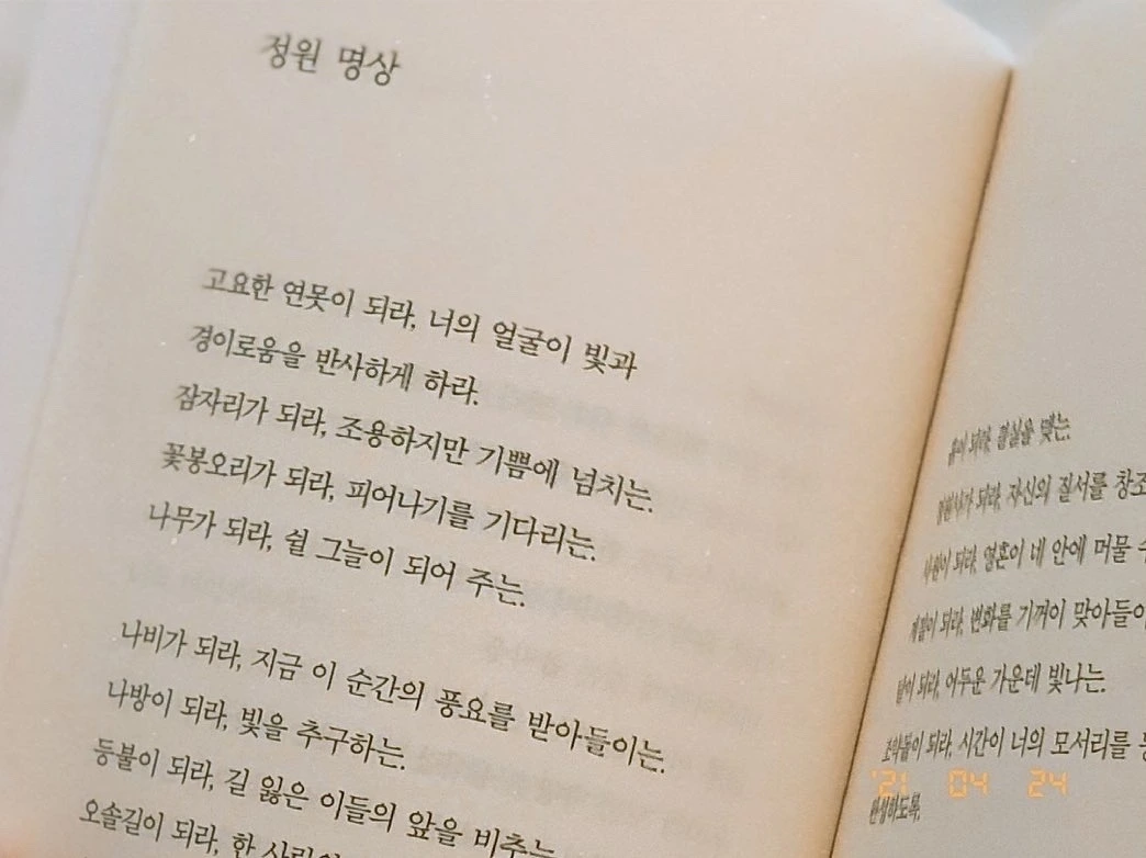 나 자신을 내보이는 것이 부끄러웠다. 그러나 이제는 그저 온전히 나 자신으로 존재할 수 있도록, 방에서 나와 높은 하늘을 바라보며 세상으로 나가야 할 때임을 깨닫는다. 언제 또 좌절하고 무너질지 모르지만, 가장 가까운 곳에 나를 위로해 줄 따뜻함을 품은 글이 있기에 난 다시 일어설 수 있을 것이다. 두려움을 버리고 더 이상 나 자신을 숨기지 말자. 꽃피어야만 하는 것은, 꽃핀다. 어떤 눈길 닿지 않아도.