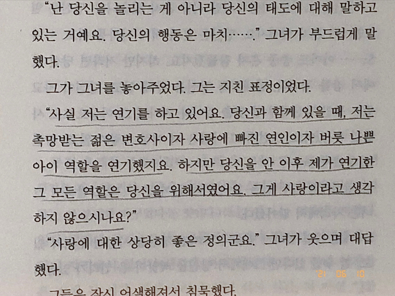 나 역시 책의 막바지를 다가가며, "제발 폴,, 그러지 마,,"를 속으로 외치며 읽었다. 하지만 나의 외침을 보란 듯 뻥 차 버리고 폴은 결국 로제에게 돌아간다. 드라마나 영화의 '해피엔딩'은 현실에 흔하지 않기에 더욱 감미롭게 다가온다. 그러나 현실에선 꽃처럼 어여쁜 사랑만이 존재하지 않는다. '사강'은 그런 꿈같은 드라마를 독자에게 결코 선사하지 않는다.