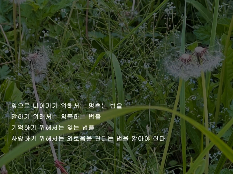 인터넷을 서핑하다 한 아이가 민들레 꽃씨를 꺾어 불고 있는 쇼츠를 보게 되었다. '귀엽다'라는 댓글이 대부분이었는데, 그중에서 "민들레 꽃씨는 열매를 다 날린 후 자연스럽게 탈락해요. 그러니까 꺾어도 됩니다 :)"라는 댓글이 눈에 띄었다. 민들레 꽃대는 바닥에 붙어 자라는 초록 이파리와는 다르게 길고 곧게 자라, 자신이 품고 있는 열매를 세상에 날려줄 바람을, 동물의 움직임을 기다린다. 짧은 시간 예쁜 꽃을 피우고 품고 있던 자식들을 바람에 태워 모두 날려 보내면 스스로 탈락해 다시 땅으로 돌아간다.