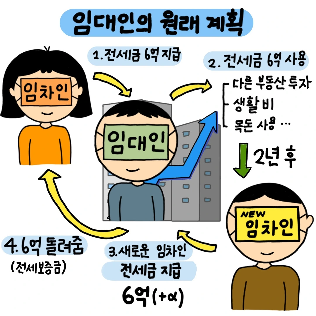 3)임대인은 전세금을 받아서 다른 부동산 투자를 하던, 생활비, 목돈으로 사용합니다