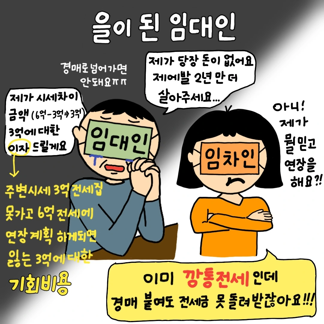 나머지 3억을 은행에 넣든, 다르게 활용할 수 있을텐데, 계약을 연장하게 되면 그 기회비용을 잃게 됩니다.