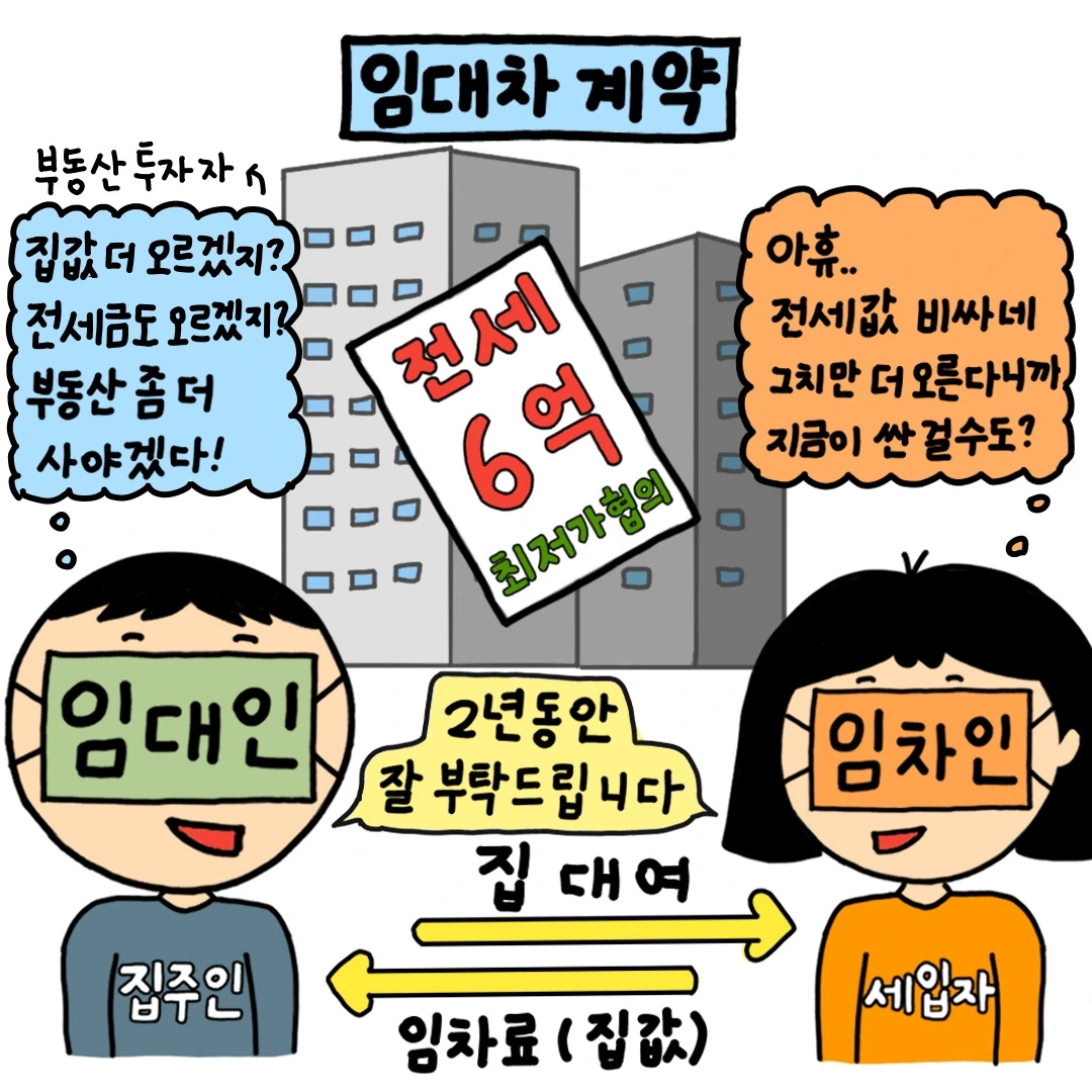 임대인(집주인)과 임차인(세입자) 사이 임차료(대가)를 지불하고, 특정 기간 동안 집을 임대해주는 계약