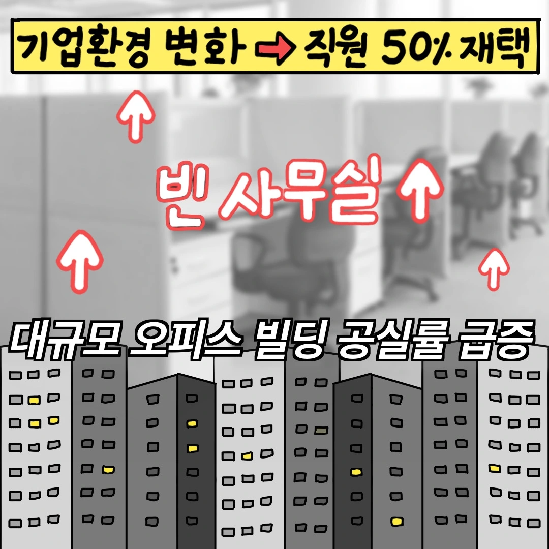 코로나로 인해 세상이 정말 많이 변한 것 같습니다. 코로나가 종횡하던 때 우리나라도 사회적 거리 두기를 시행했었죠? 미국도 대다수의 근무자들이 재택근무를 하게 되었습니다. 이때부터 미국 사무실의 공실률이 점점 올라가기 시작했죠.
