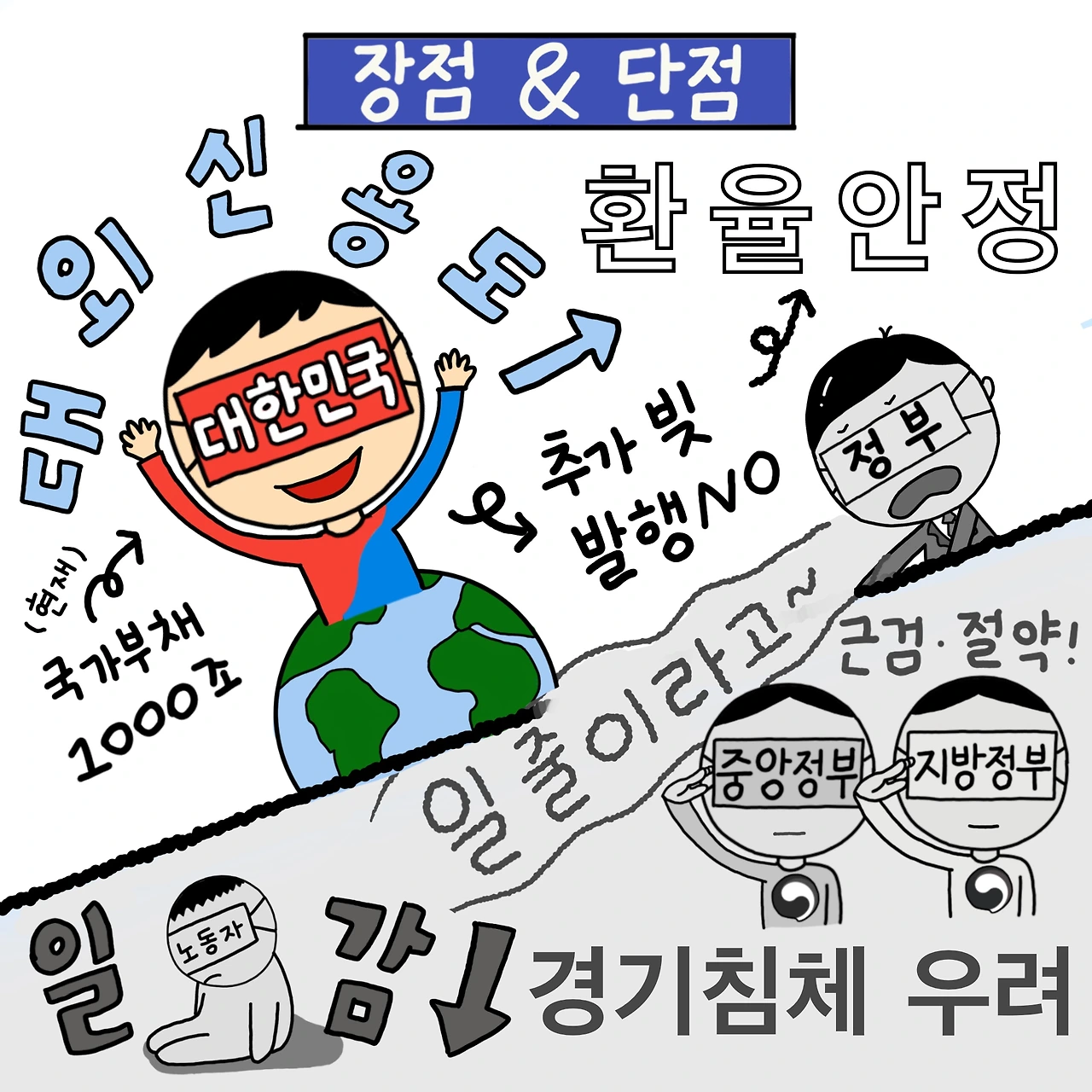 돈을 더 찍지 않고(국채 발행을 안 하고) 아껴 쓰는 방법의 장단점은 무엇일까요?