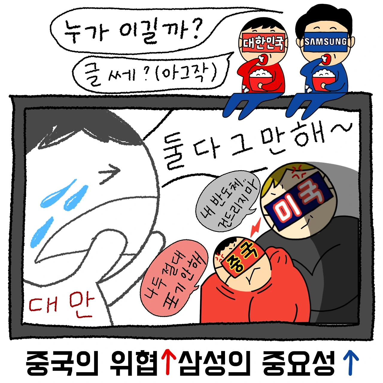 중국의 대만 위협이 올라갈수록, TSMC 독점체제의 위험성도 높아져, 삼성, 하이닉스의 중요성이 올라가게 됩니다. 만약 중국이 진짜로 대만을 침공하게 된다면, 3차 대전으로 이어질 수 있어서 한국의 안보에도 빨간 불이 뜨겠지만, '중국이 미국을 상대로 전쟁을 일으킬 수 있을까?' 하는 생각이 듭니다. 그러나 사실 중국이 어떻게 나올지는,, 모르는 일이죠. ㄷㄷ..