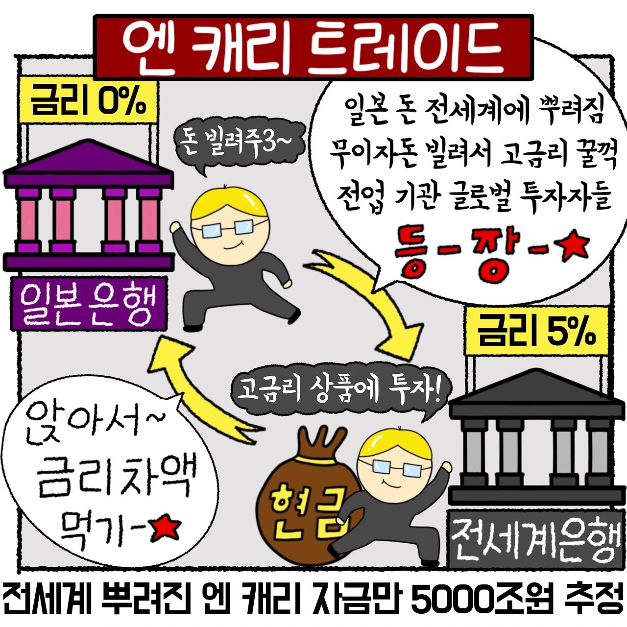 뉴스를 보다가 “엔 캐리 트레이드” 혹은 “엔 캐리 자금” 단어를 들어보신 적 있으신가요?