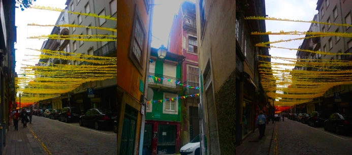 옆으로 앞으로 다닥다닥. 빛이 들어올 틈을 주지 않는 집들의 골목을 지나가자면 어둡지만 포근한 기분이 드는 건 집들이 서로 손을 잡으려 가까이 있는 것처럼 보이기 때문이에요. 덤으로 이곳엔 유난히 깃발 혹은 꽃잎 같은 작은 종이들이 머리 위로 찰랑찰랑 거려요!