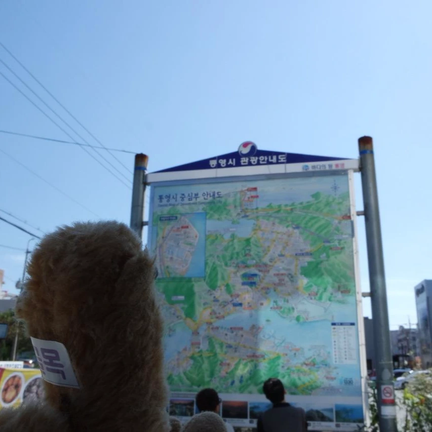 한 시간이나 일찍 도착한 우리는 급할 것이 없는 우리는 따뜻하고 온화한 남해에 온 기념으로 한껏 여유를 부렸어요. 이미 목적지가 정해져있어 볼 필요가 없는 관광안내도를 살피기도, 우리를 약속 장소로 데려다 줄 버스를 일부러 놓치기도 하면서 말이죠.