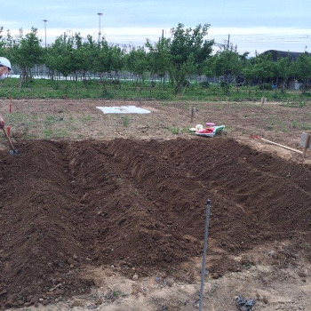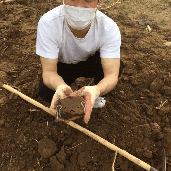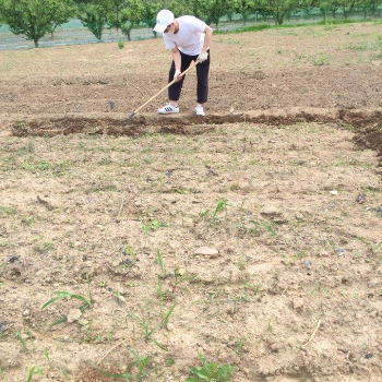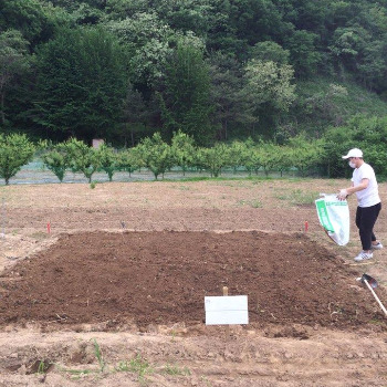 땅 고르기 : 비료를 뿌린 뒤 삽과 몇몇 농기구를 이용해 땅을 뒤적뒤적