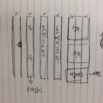 우리 손으로 키운 건강한 채소를 먹는 어른이 되어보자던 우리는 준비 없이 만난 노동에 주제의식을 잃고 잊은 채 피자와 파스타와 탄산음료를 찾아갔다. 이들을 주문하고 기다리는 마음에 힘입어 우리는 아래와 같은 밭 조성 계획을 세웠다.