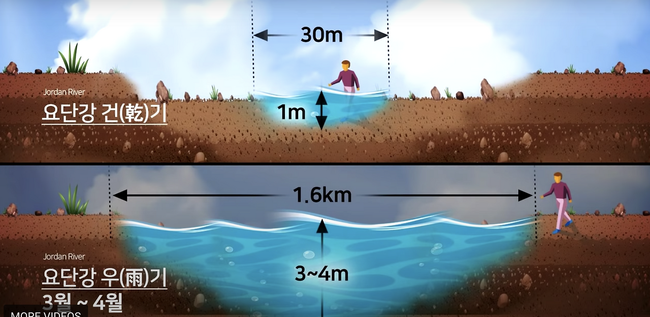 평소 건기에 이 강을 건너는 것은 문제가 되지 않지만, 우기에는 큰 문제가 된다. 강폭은 1.6km로 불어나고 유속은 16km/h 라고 한다. 요단강 도하를 하기엔 최악의 타이밍. 그리고 하나님은 200만 이스라엘 백성을 이 요단강 '옆에서' 텐트 치고 삼일 간 숙영하게 하셨다. 콸콸콸 쏟아져내리는 요단강을 보고, 들으면서 백성들은 자고 깨었다. 왜 하필 이때 였을까 생각 했을 것이다. 다리도 안보이고 배도 안보이는데 남녀노소 모두가 이 강을 건널 수 있을까, 절망했을 것이다.