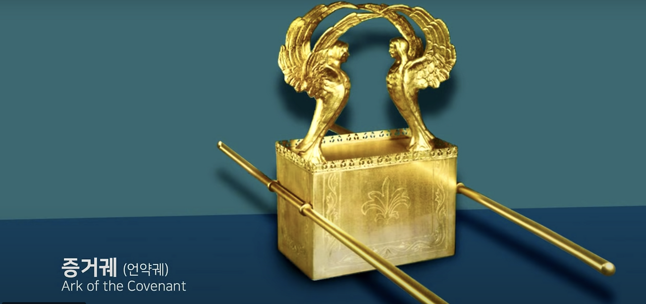 요단강을 건너는 키는 언약궤이다. 장방형의 상자로, 그 안에는 하나님의 주신 십계명이 보관되어 있다. 아카시아 나무로 만들어 겉을 황금으로 입혔다. 그림과 같이 막대를 이용해 레위인들이 어깨에 메고 운반하여야만 했다. 절대 소가 끄는 수레로 운반하면 안된다. 언약궤는 하나님의 말씀을 상징한다. 언약궤를 멘 레위인들 앞에 나팔을 부는 레위인들이 섰다.