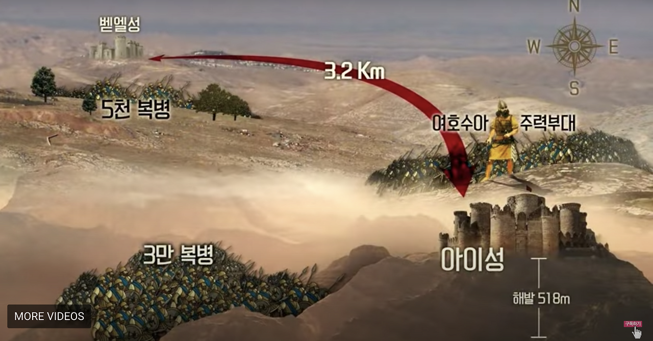 하나님은 아이 성 뒤에 복병을 두라고 심플하게 말씀하셨다. 그런데 여호수아가 밤새 실시한 전략은 굉장히 복잡하다. 당시 벧엘 성과 아이성은 자매결연처럼 공조 체제로 묶여 있었다. 여호수아는 아이성의 정면에 주력부대와 함께 섰고 3만 복병은 아이성의 서쪽에, 5천 복병은 벧엘과 아이성 사이에 주둔시켰다. 여호수아의 전력은 이러하다. 본대가 성을 공격하여 성 안의 사람들을 최대한 밖으로 유인한 사이, 3만 복병이 비어있는 성을 급습하여 무너뜨리고 그 모습에 다시 아이성으로 돌아가는 병력을 주력부대가 뒤쫓아 궤멸시키는 것. 그리고 벧엘 성에서 진격해오는 구원군까지 5천 복병이 급습하여 그 부대까지 궤멸시키는 것이었다. 이 전략을 위해 여호수아는 밤새 각 포지션에 맞게 군사들을 배치시켰다. 하나님은 심플하게 한 말씀만 하셨는데도 여호수아는 그곳의 지리와 지형을 고려하여 치밀한 군사계획을 세워 실천했다.